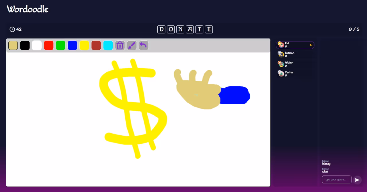 Guessing: While the drawer is sketching, the other players try to guess what the drawing represents. They can shout out their guesses or write them down privately.